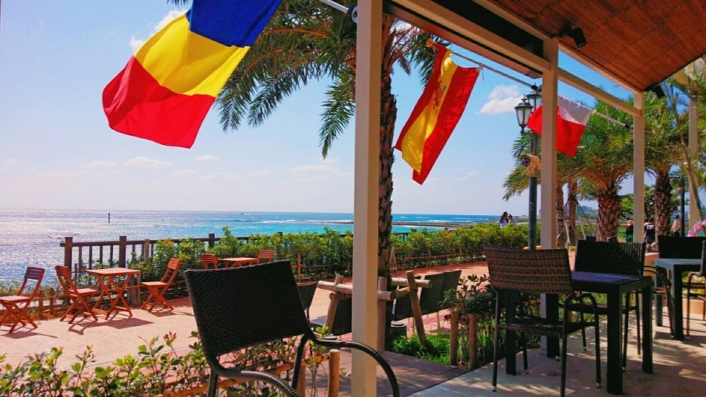 沖縄の青く広がる海を眺めながら、ヨーロッパの食文化を楽しめる特別な空間。