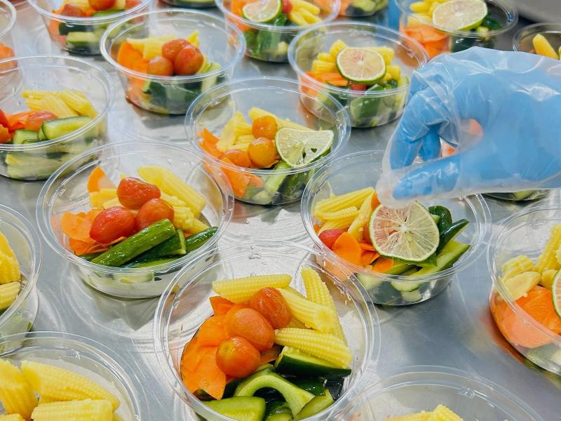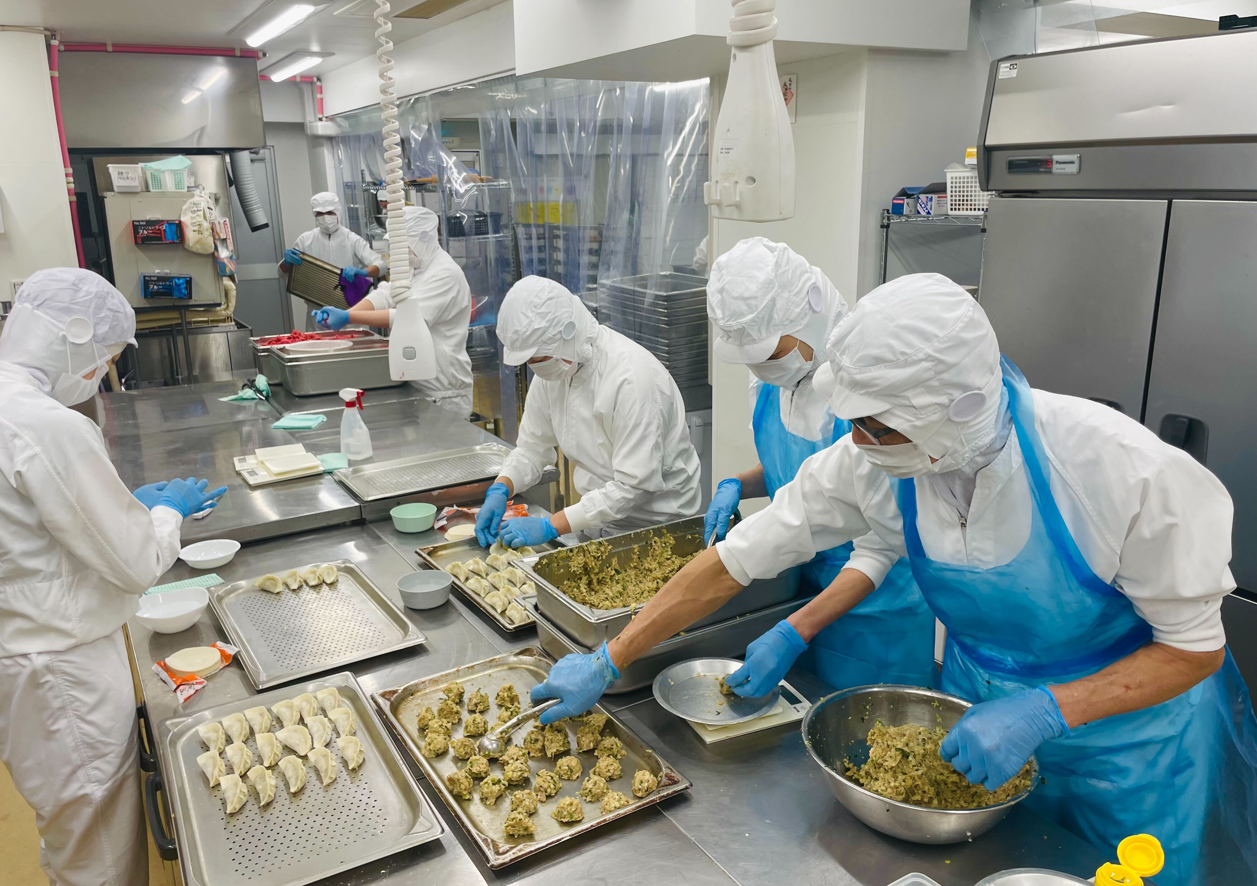 1日4700食をチームでつくる現場。調理はすべて人の手で。