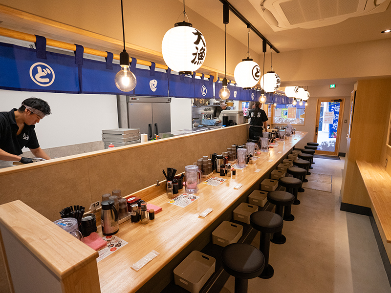まずは調理・接客を通して店舗全体の流れをつかむところからスタートします。カウンターでの握り、仕込み、盛り付けなどの調理業務に加え、お客様へのご案内や会話、提供などの接客も担当します。