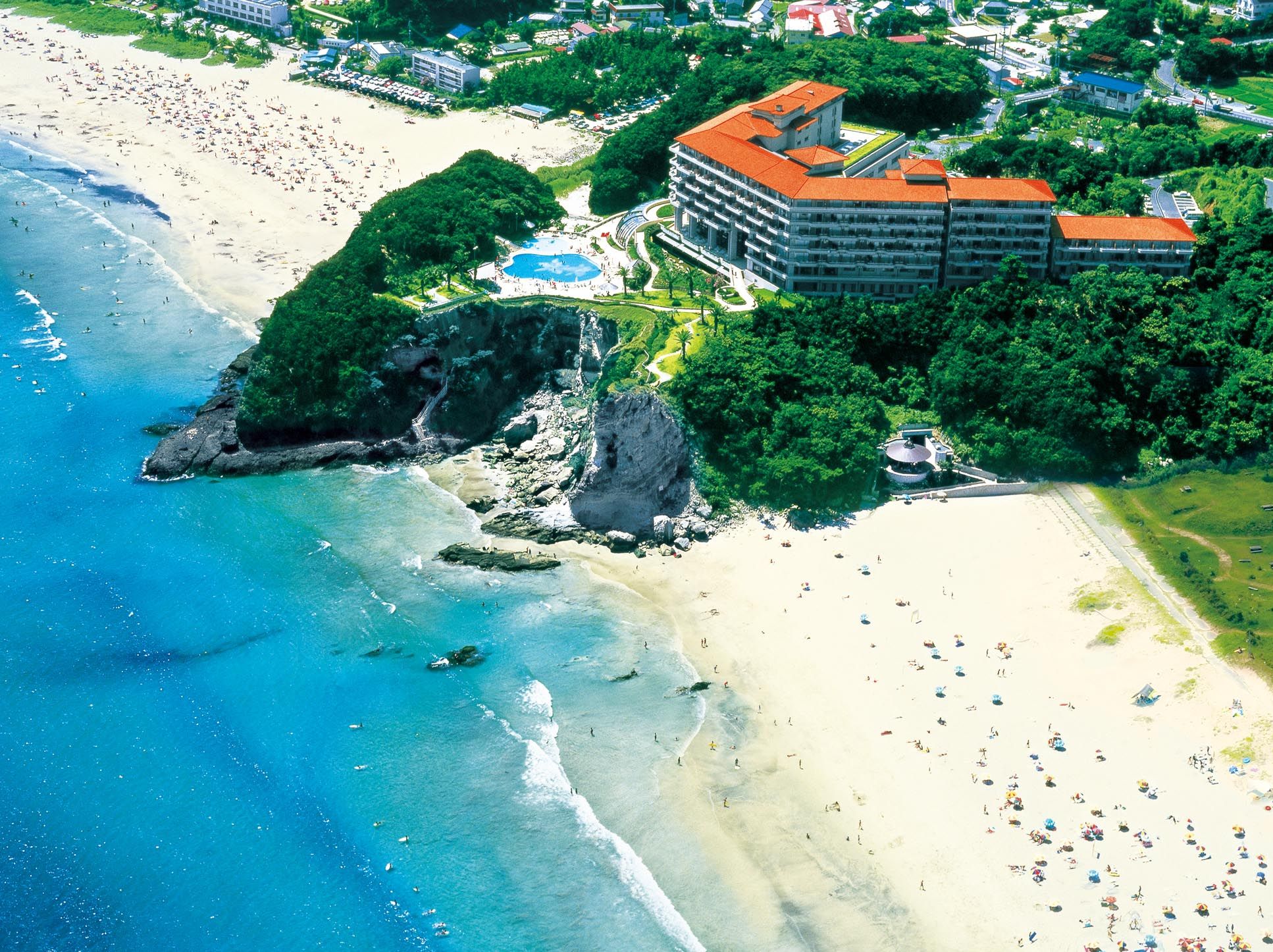 環境省が毎年選定している「水質ランクが最高水準」の美しいビーチ、多々戸浜と入田浜を両翼に従えた国際的なマリンホテルで、充実の施設が楽園のリゾートライフをお届けしています。