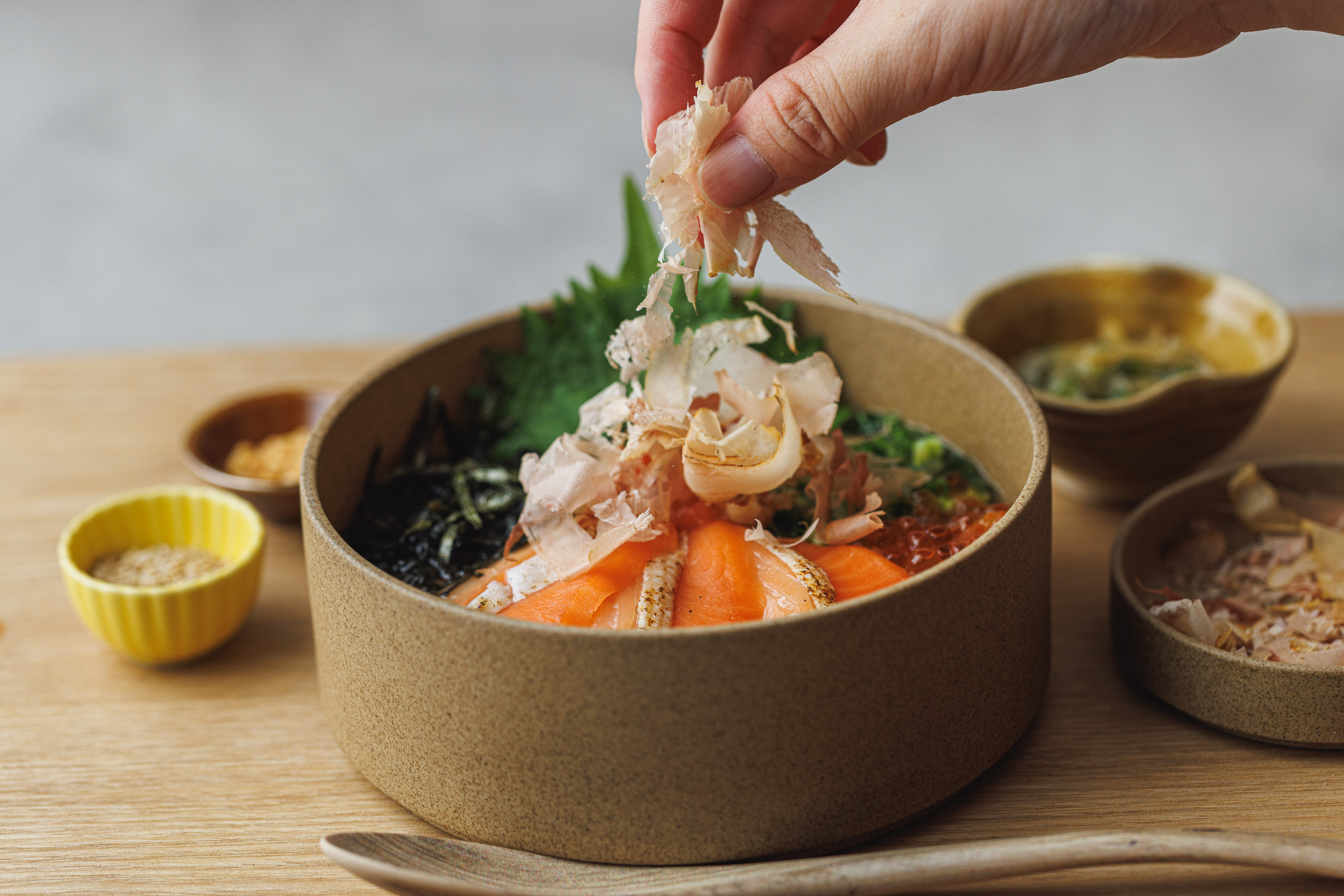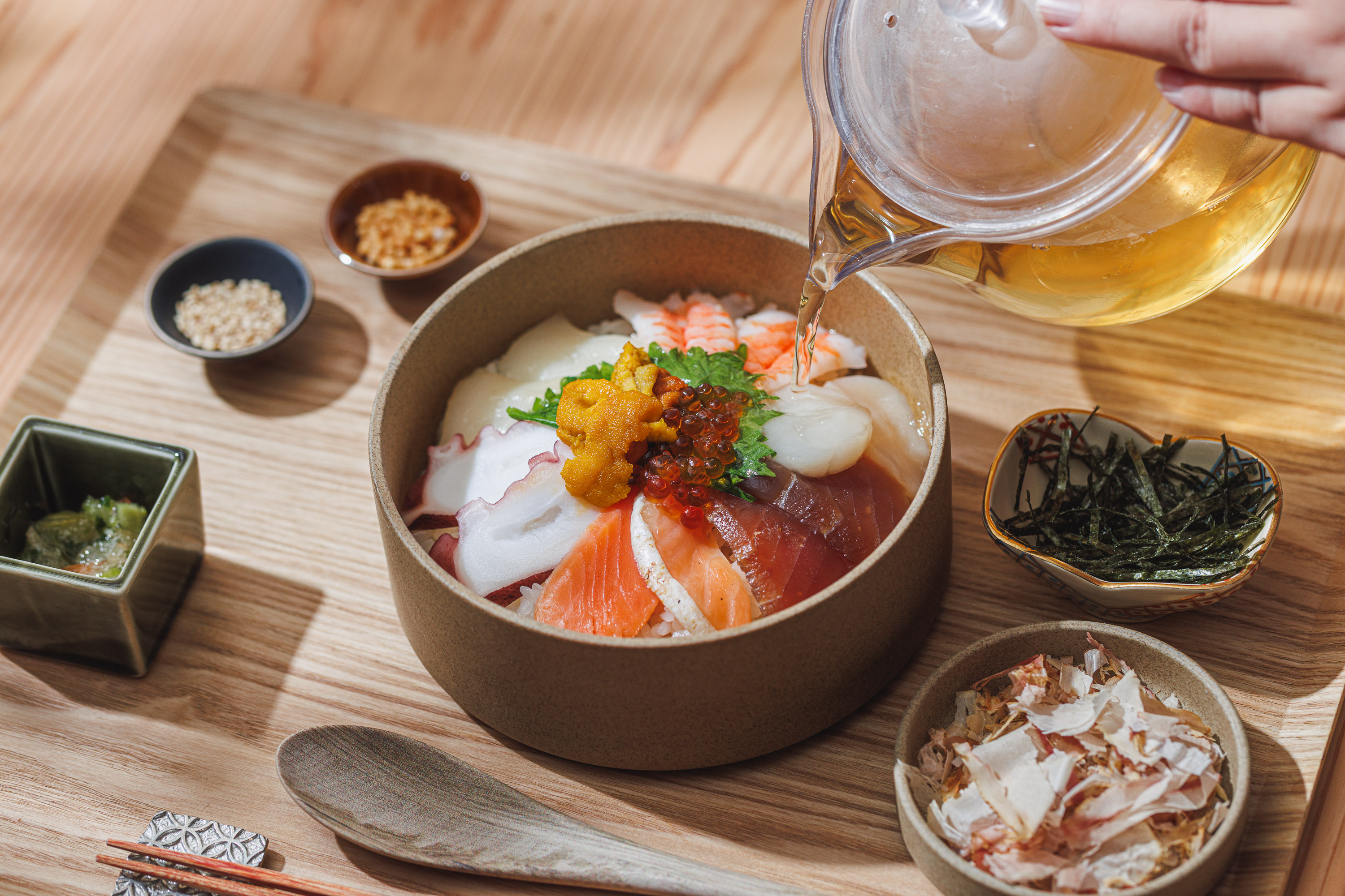 出汁茶漬け専門店で客単価は1,000円ほど。カジュアルにご利用いただけることが特徴ですが、もちろんこだわりも充分。扱うお米や炊き込み仕上げ、だしも自家製で特製のけずり節の用意などもあります。