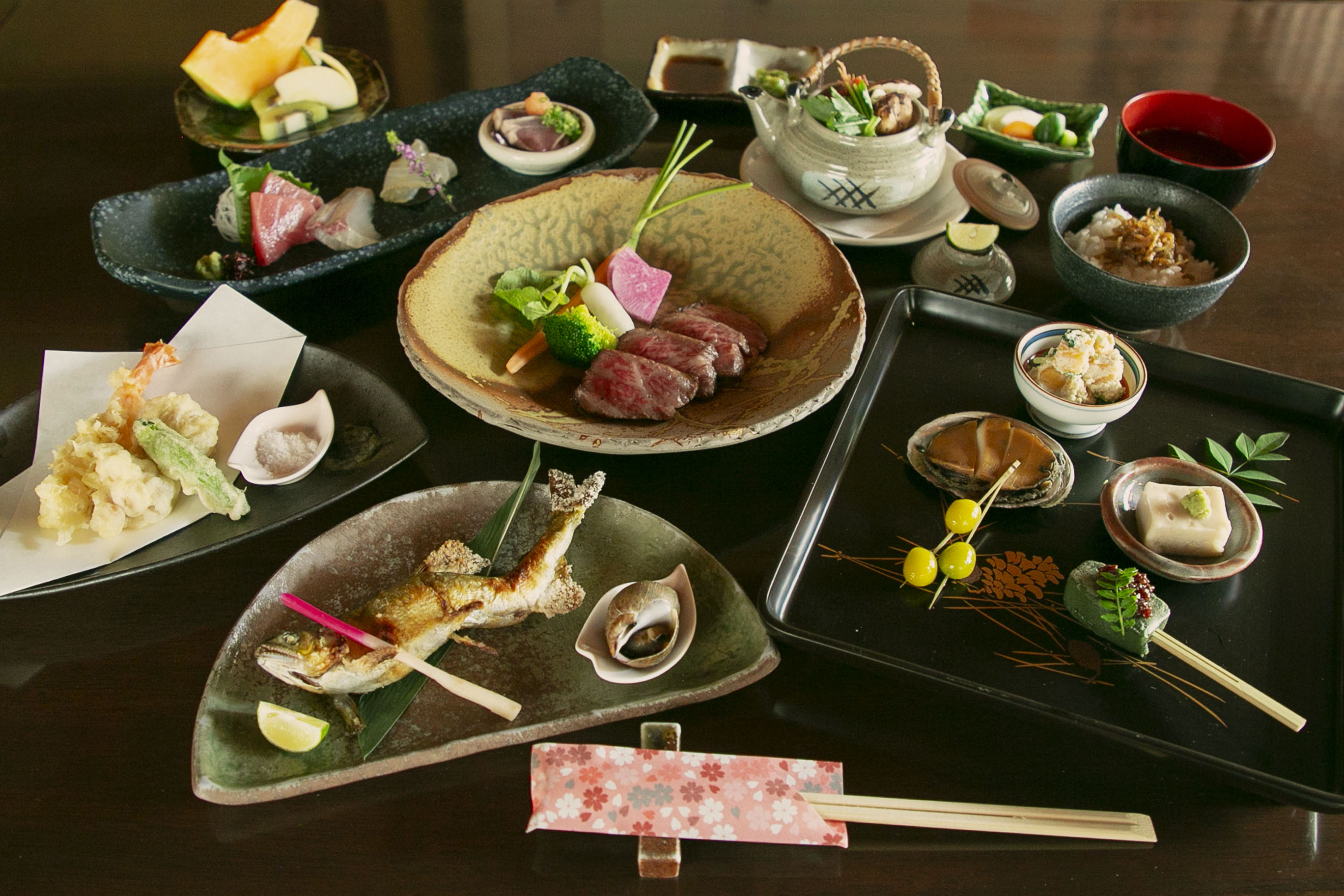全席個室の落ち着いた空間で、全国各地から選び抜いた旬の食材を用いた“郷土素材料理”や“ふぐ会席”を提供しています。
