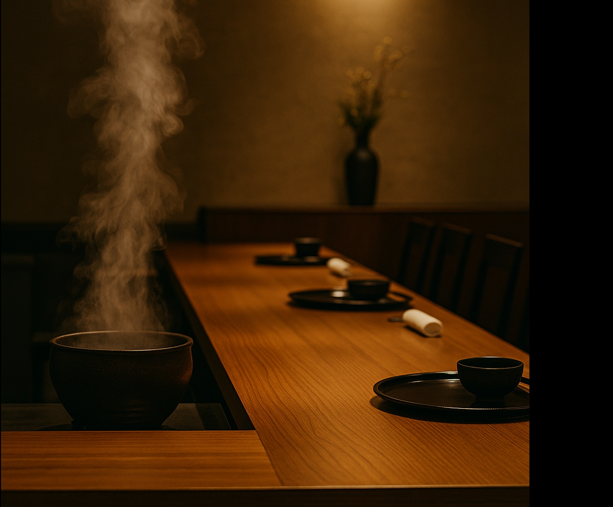 厨房は“所作で魅せる”ために設計され、湯気や香りが最も美しく立ち上がる導線を追求しています。