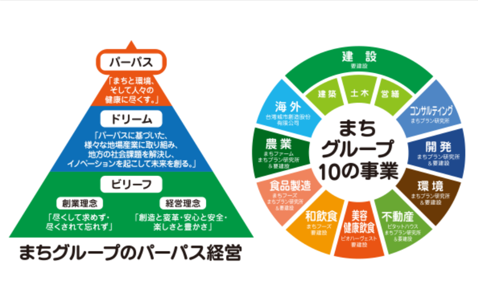 「まちグループ」は1972年の設立以来、水戸市に本社を構え、建設事業をはじめ、街づくりや飲食、美容・健康、環境課題への取り組み、自社農園「まちファーム」運営、さらには海外進出など幅広い分野で地域とともに成長してきました。「まちと環境、そして人々の健康に尽くす」を理念に、地元の社会課題解決と未来創造を目指し、地域のイノベーションに貢献しています。