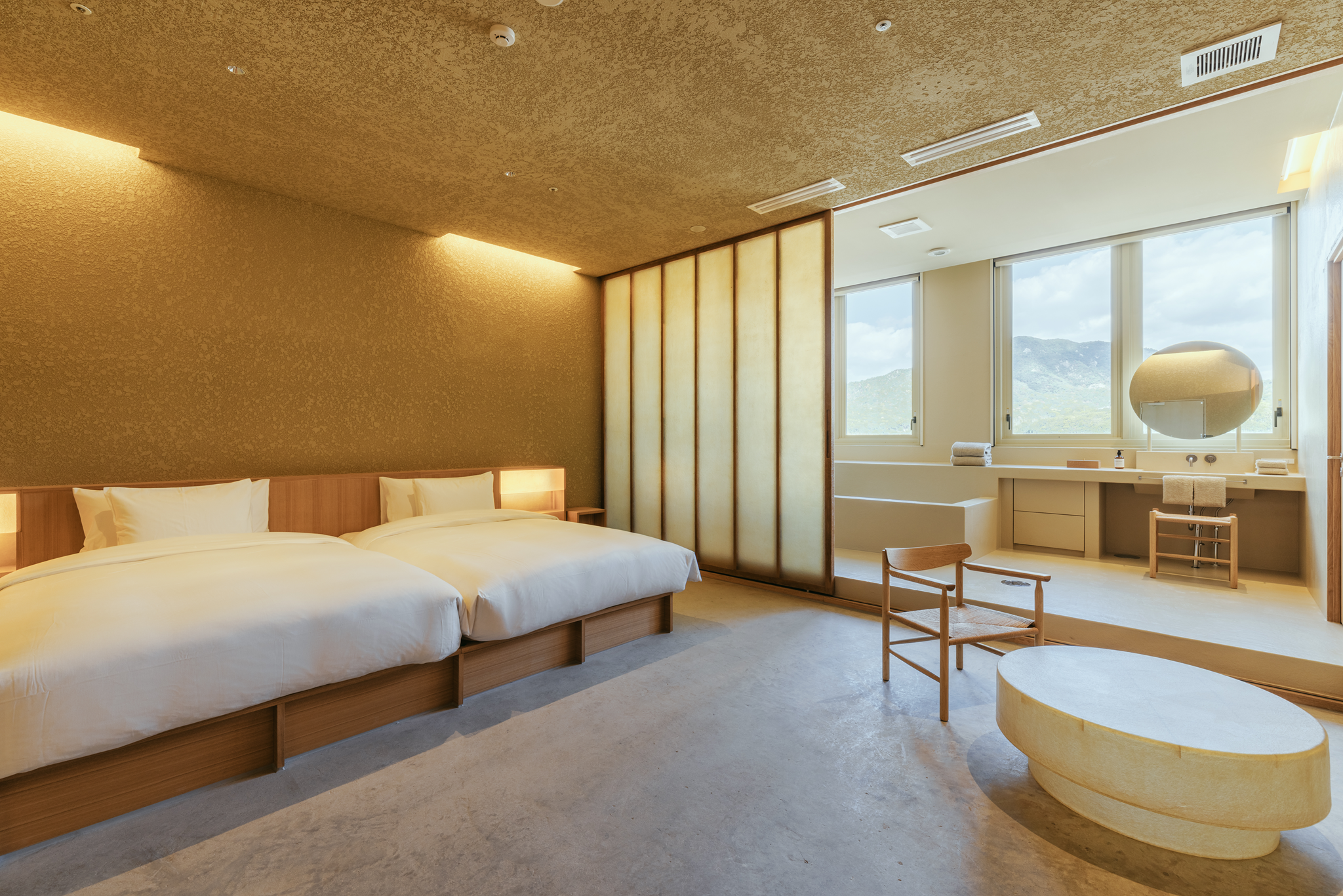 客室は全31室。島の景色や素材と調和するデザインのもと、喧騒から離れ、ゆったりと島の時間に身を委ねられる空間を目指しています。