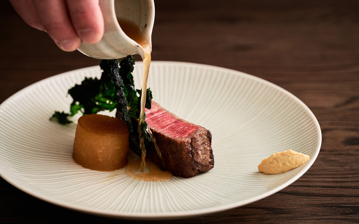 ホテル内にあるモダンフレンチレストランは、世界中にレストランを展開し、ミシュラン三つ星獲得歴をもつ巨匠ジャン‑ジョルジュ・ヴォンゲリステン氏が監修を手がけた本格フレンチダイニング。オープンから1年後の2024年にはミシュランガイド京都・大阪2025で1つ星を獲得。その品質の高さは世界の美食家からも注目されています。