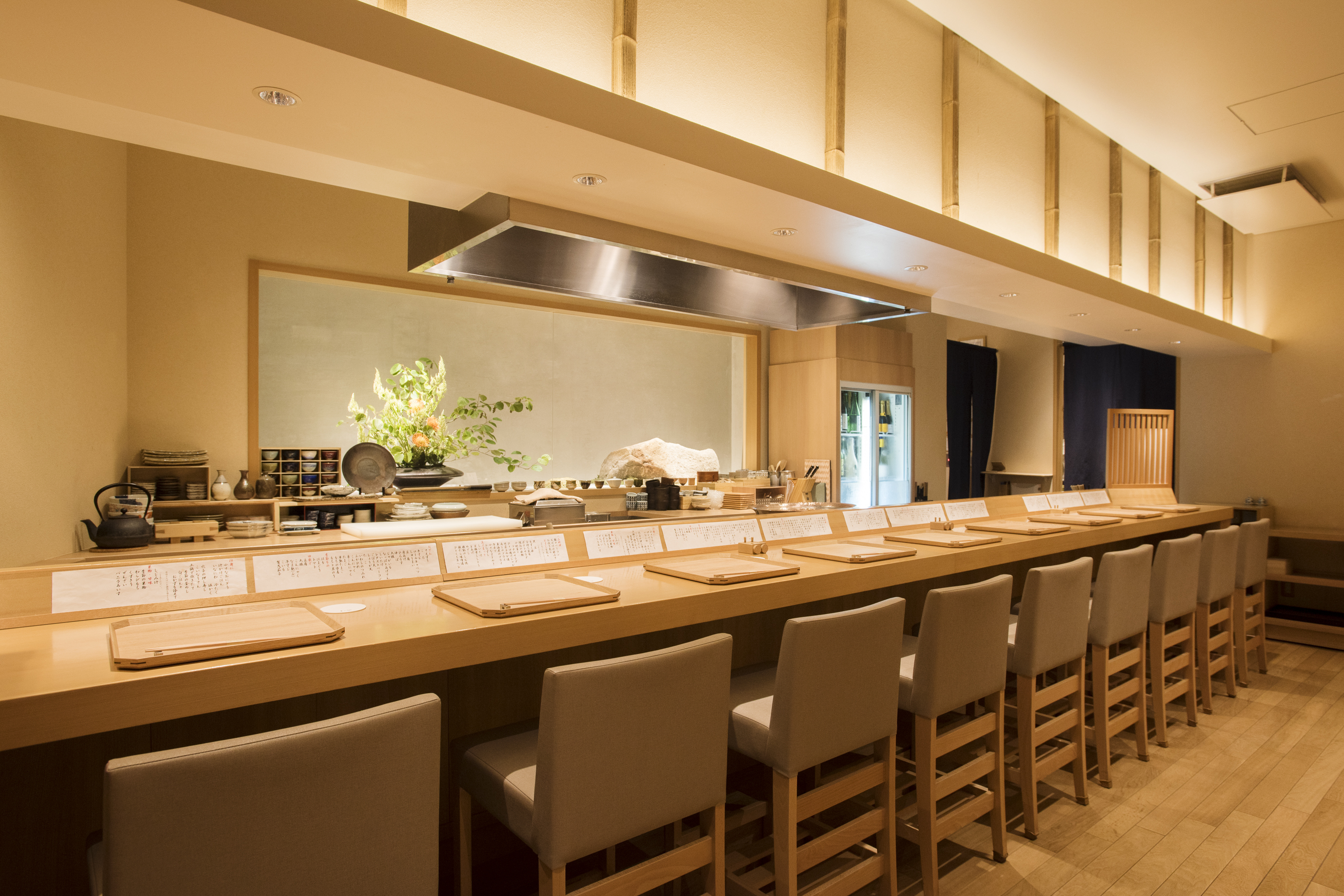上質な街並みに調和し、東京ガーデンテラス紀尾井町の3階に構える当店は、四季折々の厳選素材を使用し、懐石料理の技法をベースにした「おでん」や和の一品料理を割烹スタイルで提供。