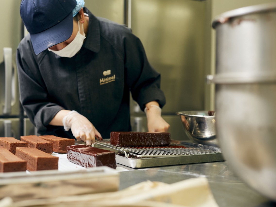 毎日仕上げるチョコレートケーキやショートケーキといった生菓子、焼き立てを味わうフィナンシェなどの焼き菓子、出来たてならではのフレッシュさを楽しむアシェット・デセールなど、これまでのMinimalにはなかった“初めて”を存分に楽しめる新しいチョコレート体験を、祖師ヶ谷大蔵からお届けしています。