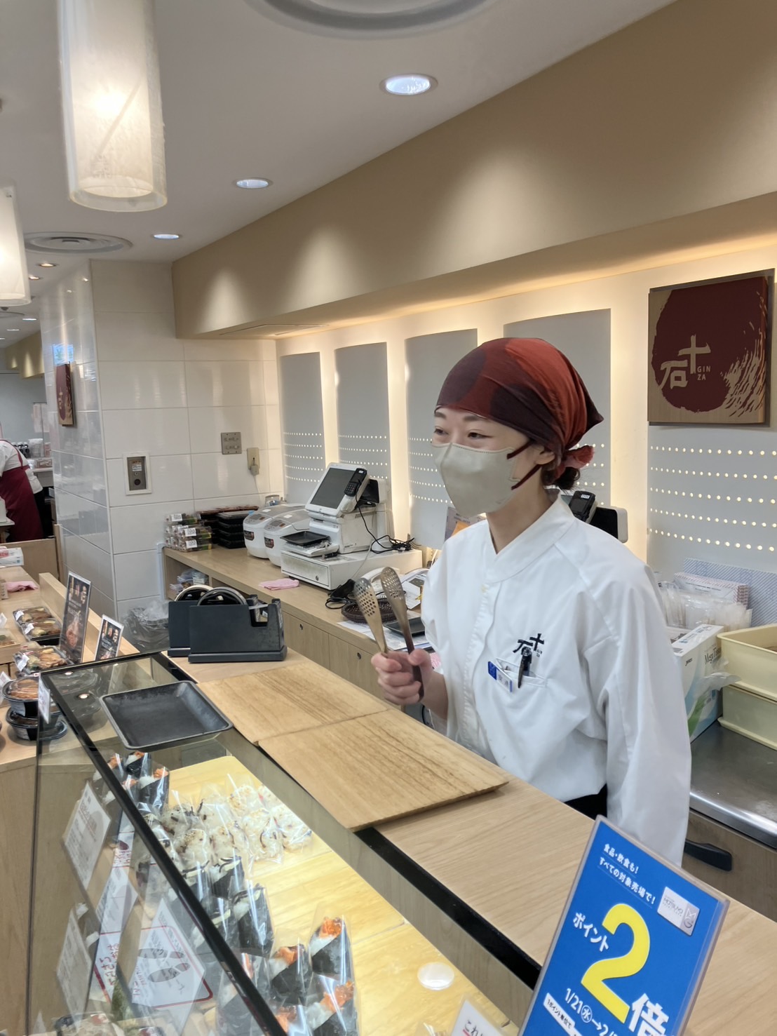 お任せするのは、店頭での販売業務が中心です。といっても、ただ商品を並べてレジに立つだけではありません。銀座十石では、おむすびを目の前で握る“実演”を行っており、「つくる・見せる・伝える」までが販売の仕事。お弁当の詰め作業など、専用機械を使った簡単な調理も一部お手伝いいただきます。