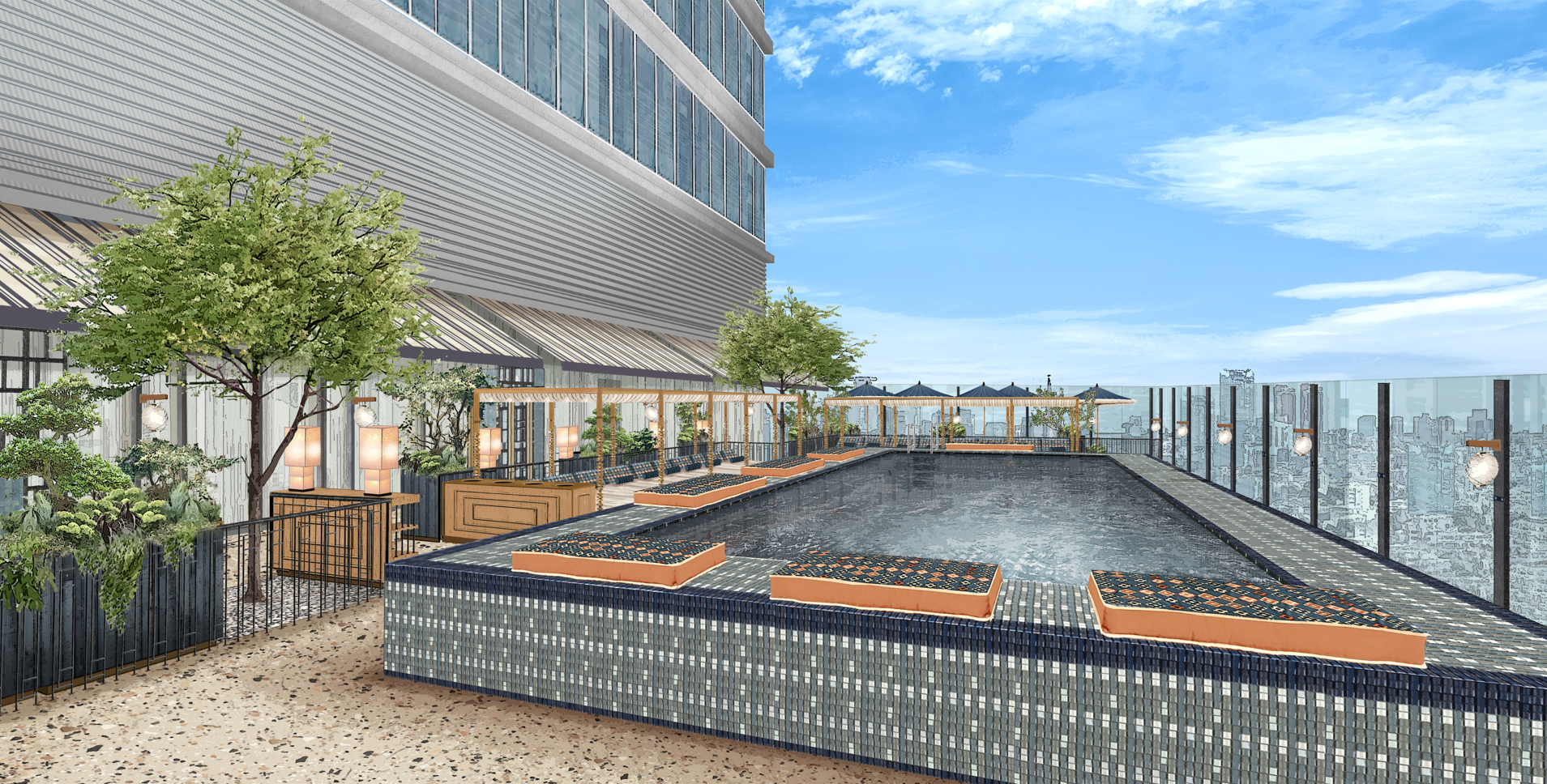 14階のプールテラスでは、六本木方面を一望でき、開放的な空間を楽しむことができます。