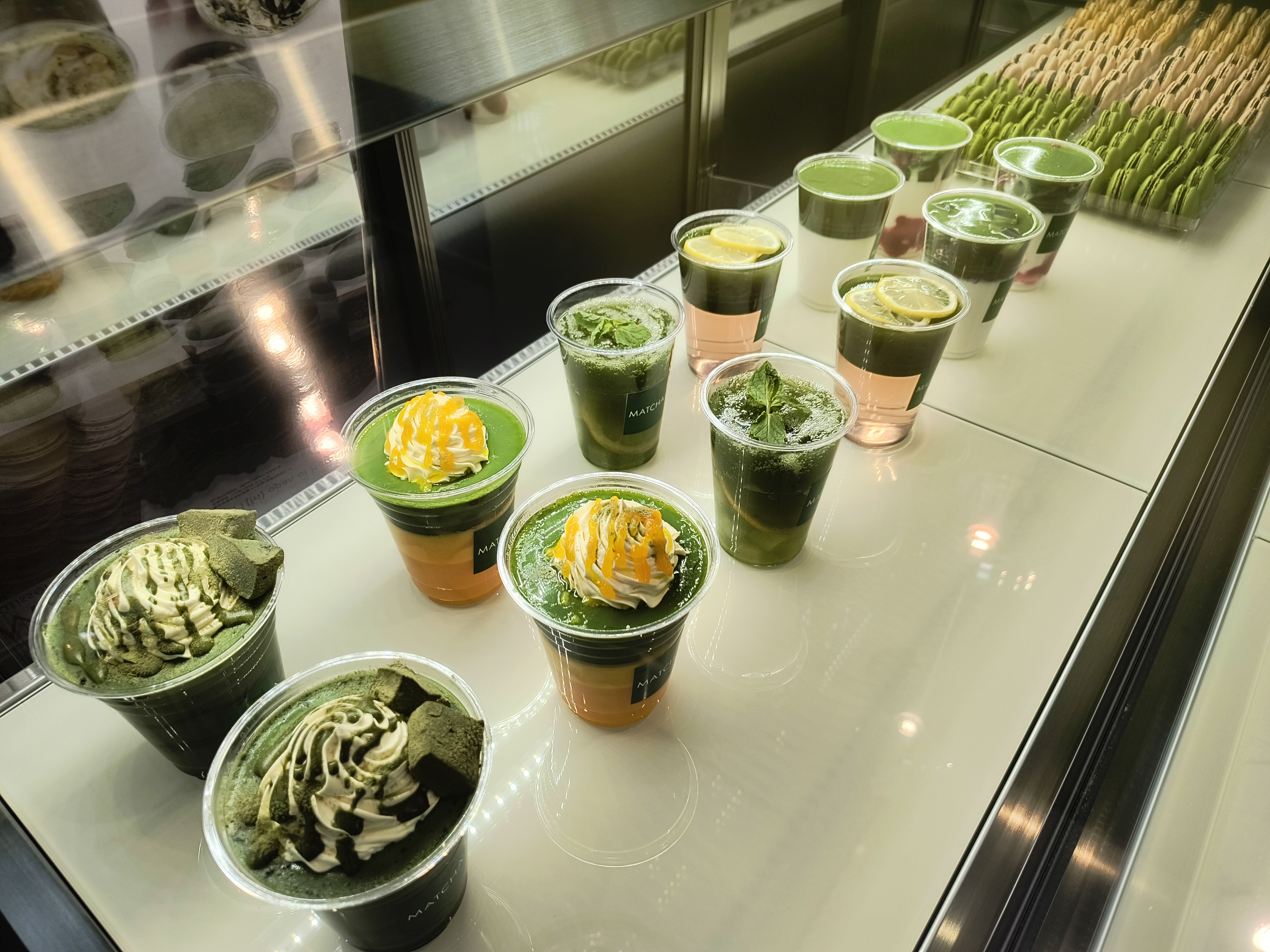 ショーケースに並ぶのは、和と洋が溶け合う抹茶スイーツ。