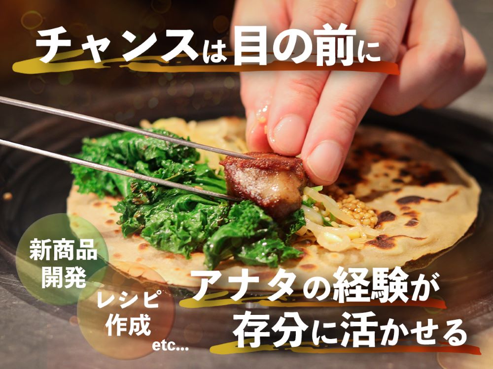 メニュー開発等積極的にお任せします。あなたの「やりたい」を実現したいのでたくさん声を聞かせて下さい。