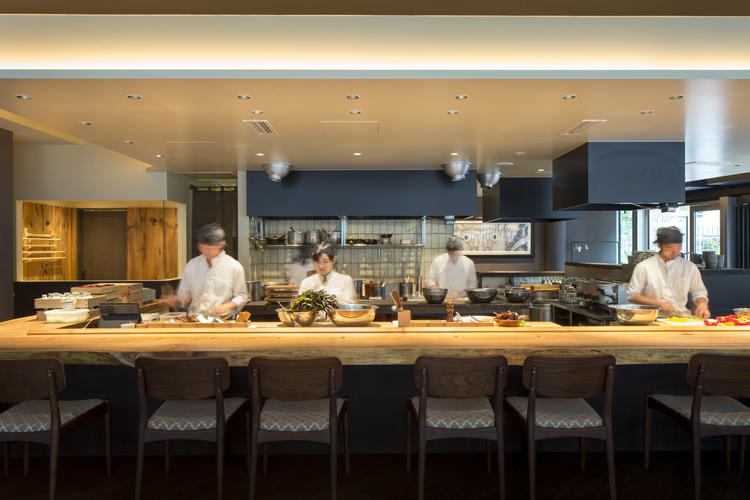 ライブ感あふれるオープンキッチン。お客様との距離も近く、五感で楽しめる現場です。