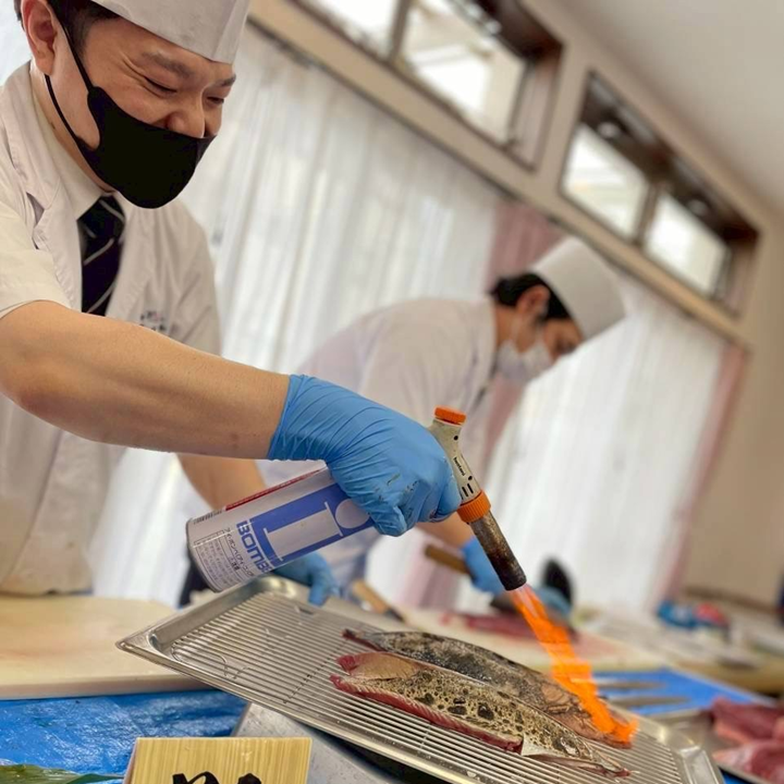 いけすの魚をさばく実演や寿司・天ぷらなど料理人らしい仕事にも挑戦できます。
