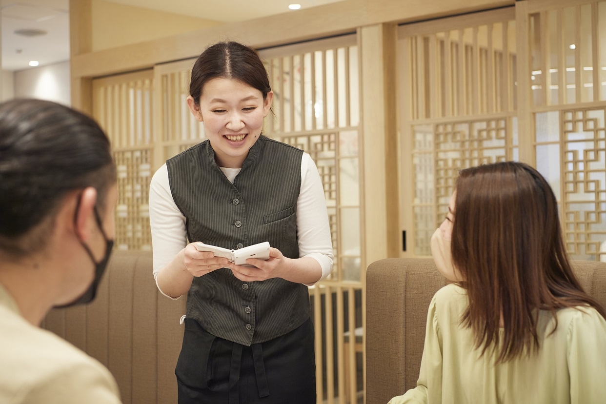 まずは、ホールでの接客業務全般からスタート。
