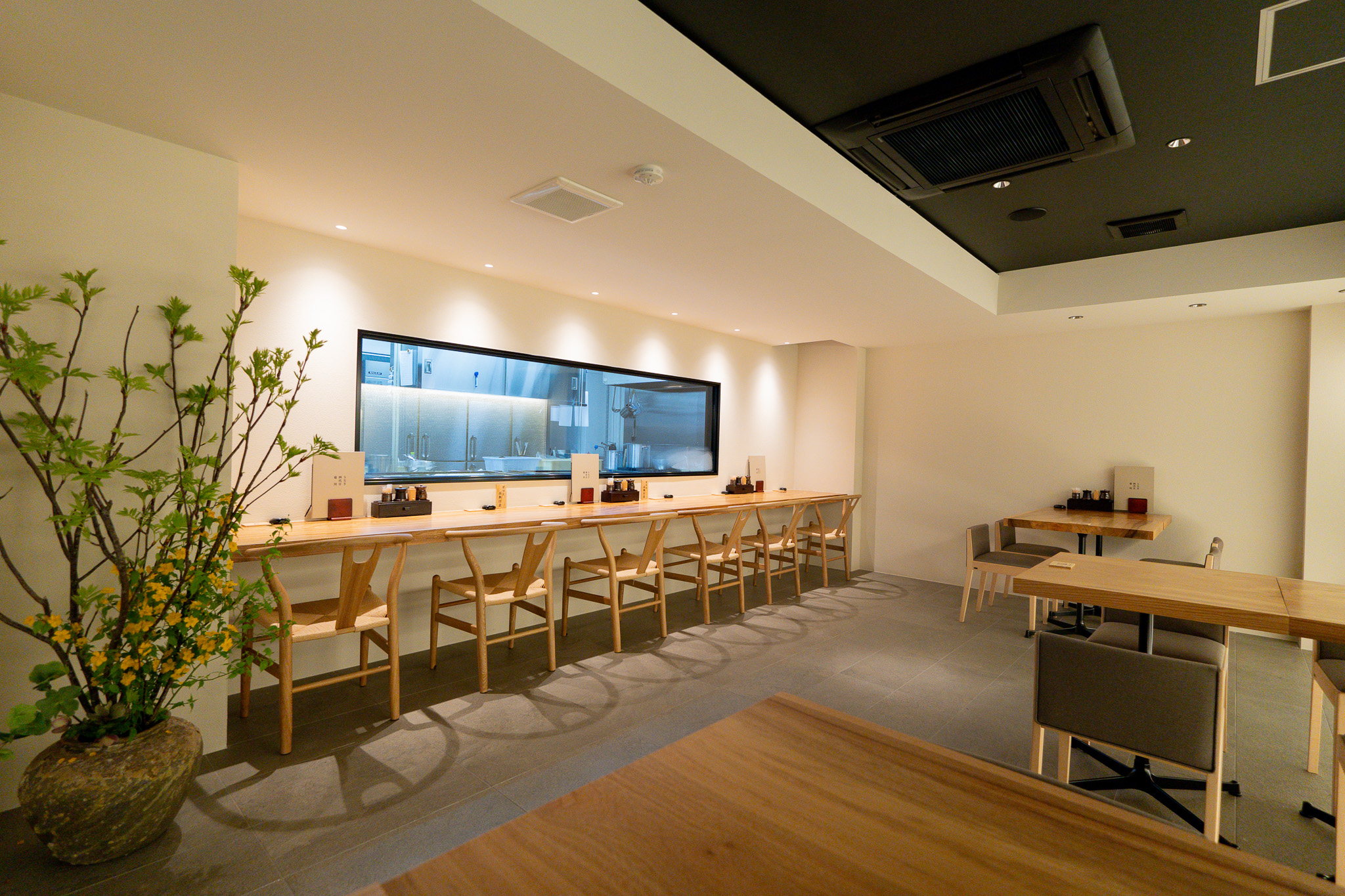 落ち着いた雰囲気の店内。慌ただしさに追われず、丁寧な接客と調理に集中できます。