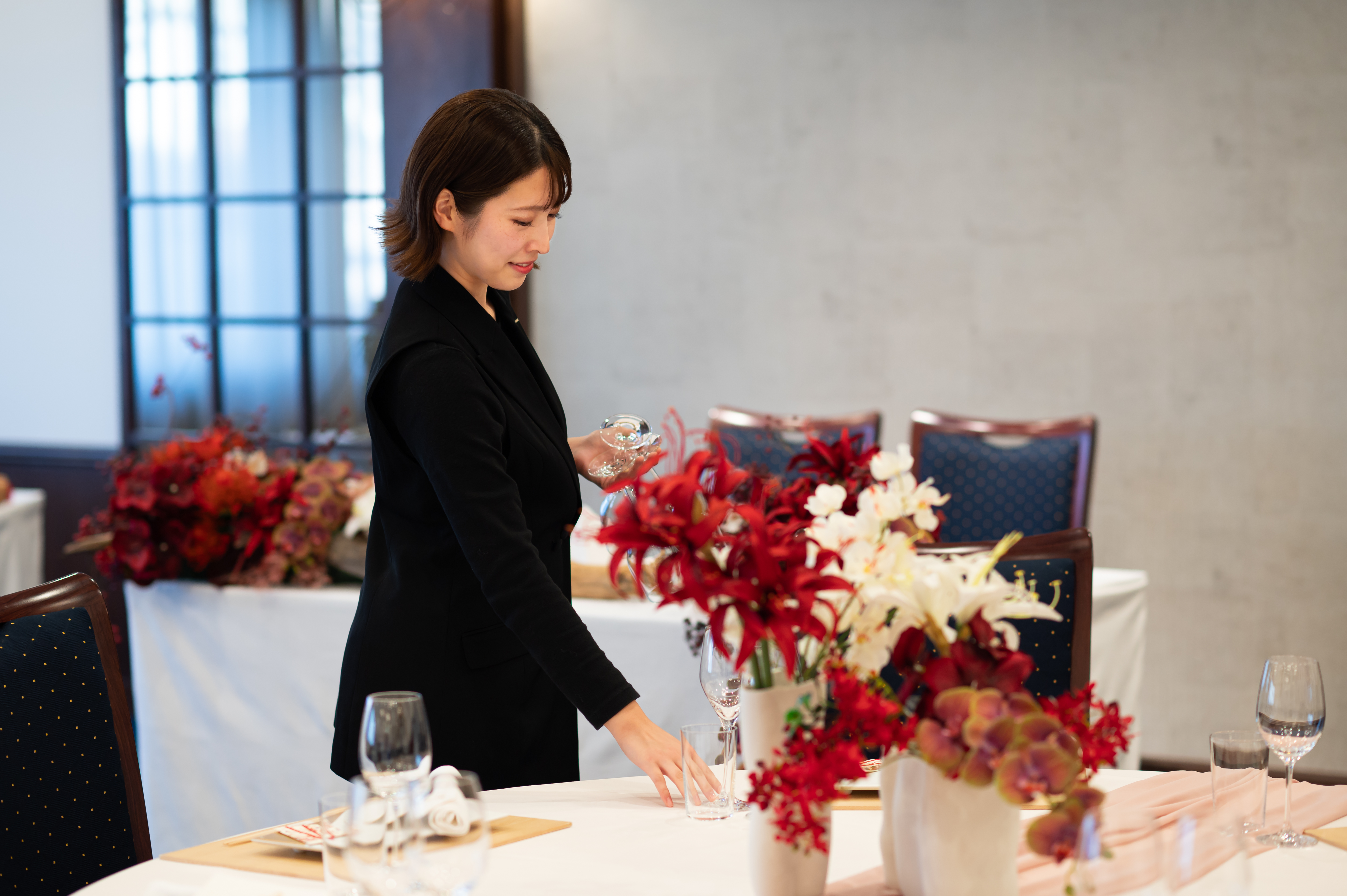 ・披露宴、宴席での接客(ドリンク提供・料理配膳・ご案内)