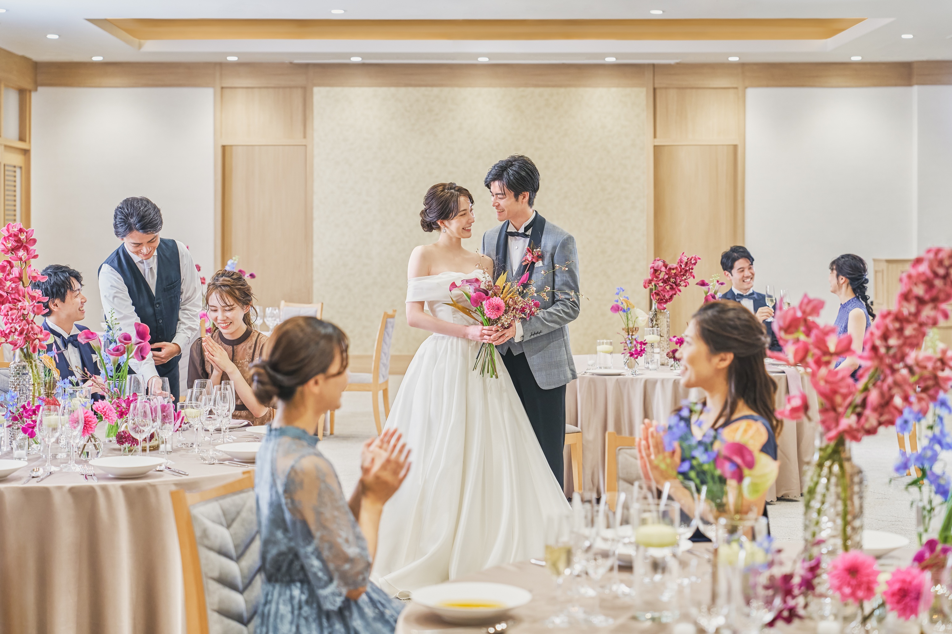 現在ではブライダル・ホスピタリティの分野で、衣装、式場運営、料理、サービスまで一貫して手がける企業へと成長しました。