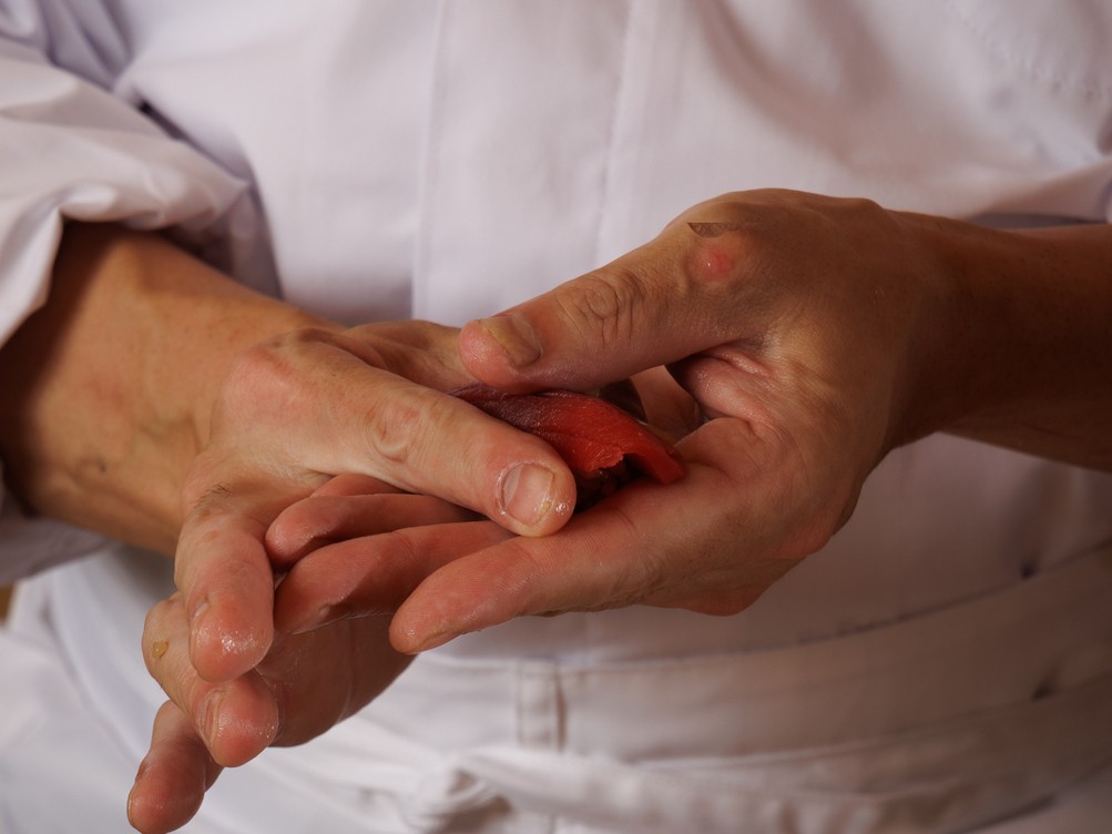 具体的な業務は、仕入れからメニュー構成、仕込み、当日の進行、握り、お客様との会話まで、カウンターを一つの“舞台”として成立させるための演出すべてをお任せします。