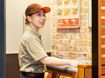 入社後はお客様への接客、サービス応対、ハンバーガーの製造から店舗オペレーションのチェックまで幅広い業務に携わります。一通りの業務に慣れた後は、売上促進などの企画・立案、店舗衛生管理、スタッフの育成・管理、売上・原価・諸経費の管理も行っていただきます。