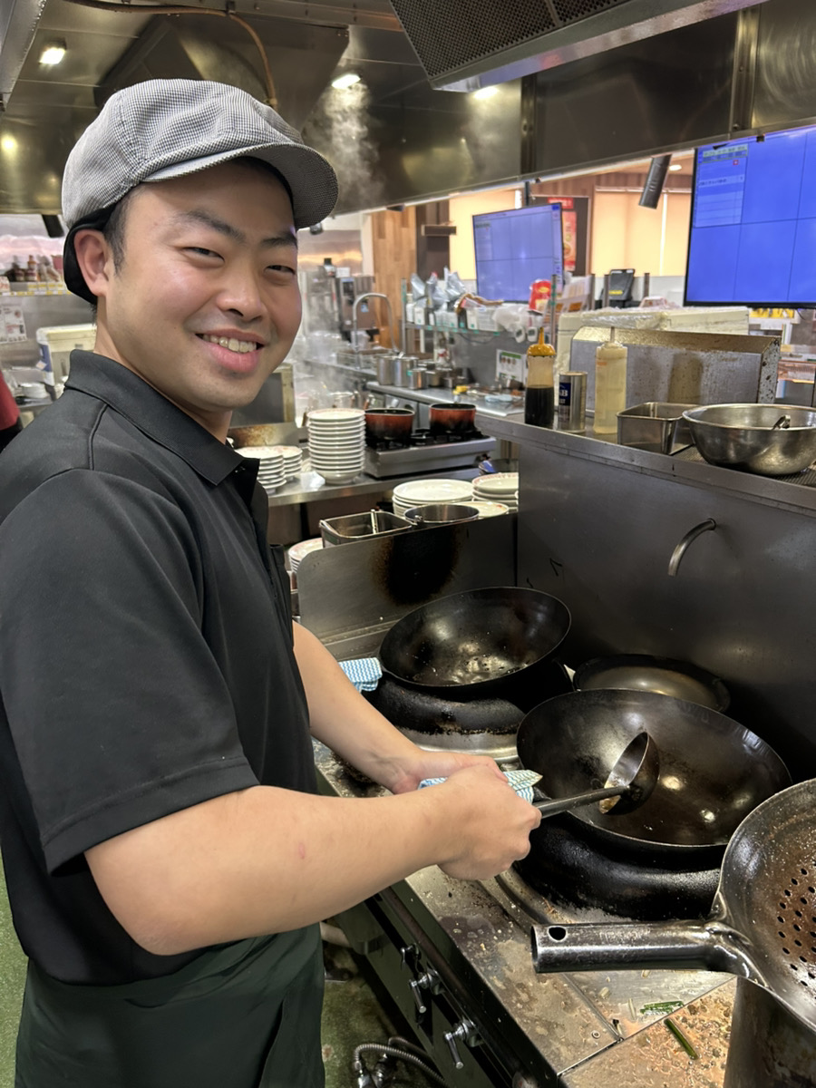 タッチパネル式オーダーやキッチンディスプレイを導入し、スムーズな提供を実現しています。餃子は専用機械で安定した焼き加減を再現でき、チャーハン用の鍋も軽量素材を採用するなど、未経験の方でも扱いやすい環境を整えています。