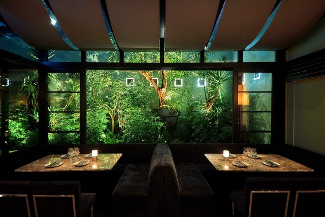 自然光と緑に囲まれた開放的な空間。昼はブランチタイムの舞台に。
