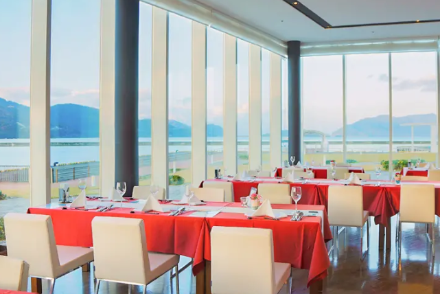 レストラン「SAVOR」。小浜・若狭湾を眺めながらゆったりとお食事をすることができます。