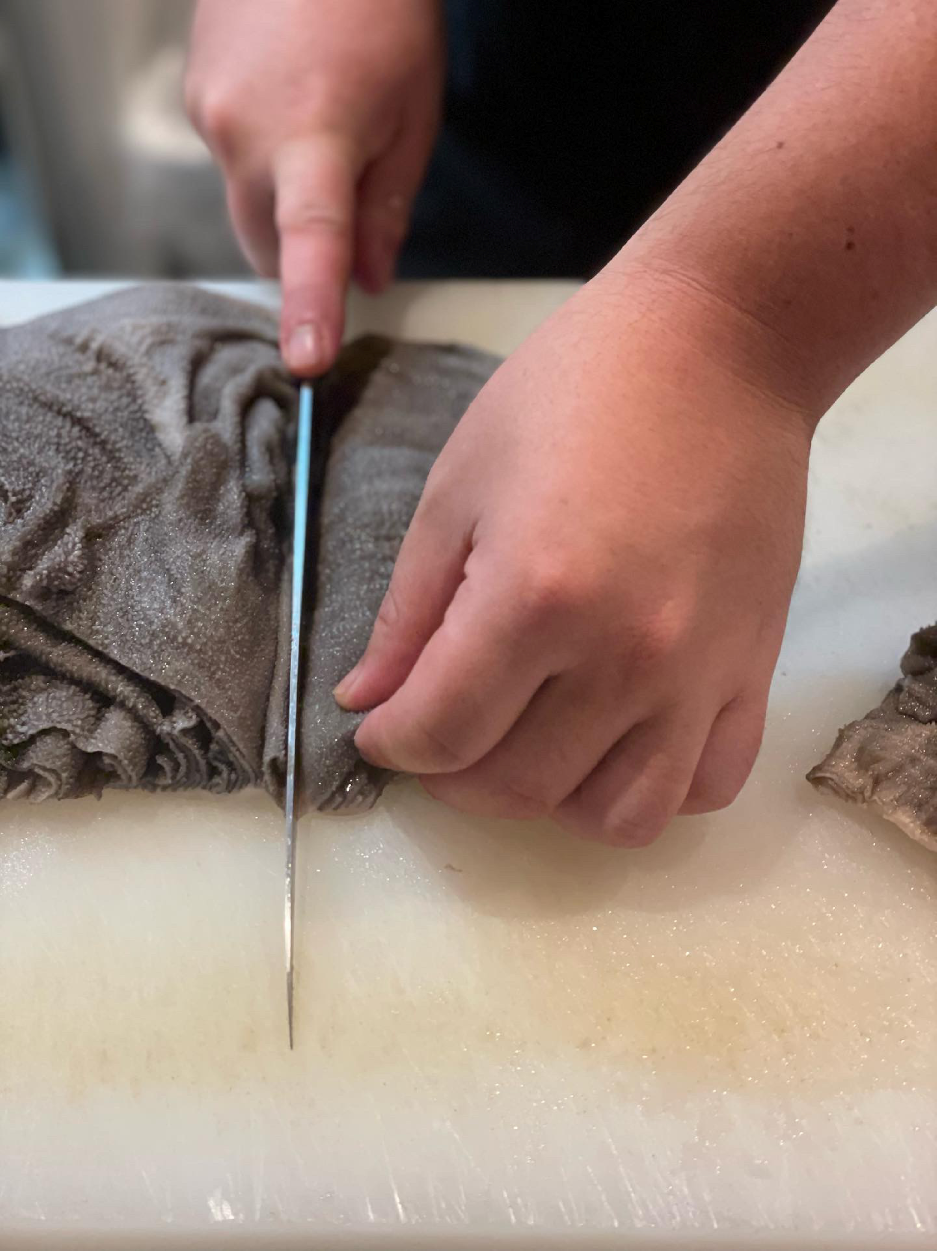 肉の部位ごとの特性や、最も美味しく提供するためのカット技術を基礎から学べます。