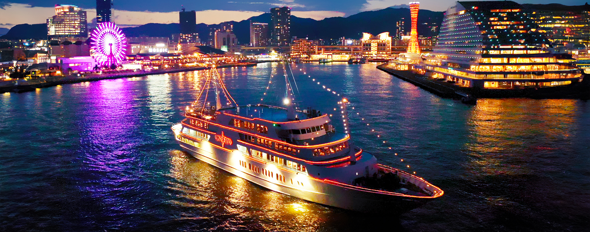 『コンチェルト』『ルミナス神戸2』は、神戸港を舞台に非日常の食体験を提供するクルーズレストランです。海と街の景色を眺めながら食事を楽しめる特別な空間は、観光はもちろん、記念日や誕生日、プロポーズなど人生の大切な瞬間を過ごす場所として多くのお客様に利用されています。時間帯によって移り変わる神戸港の景色とともに料理を楽しめることが大きな魅力であり、船上ならではの特別な体験を提供しています。