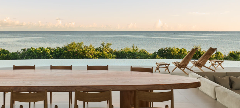 約3,000坪の広大な敷地にあり、海を一望できるロケーションが自慢。 客室は4ベッドルームのみ。水平線まで一望できるリビング・ダイニングでお料理をご提供しています。