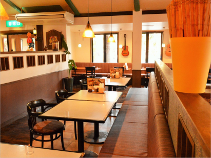 アメリカンテイストの落ち着いた店内。幅広いお客様に愛される地域密着の人気店です
