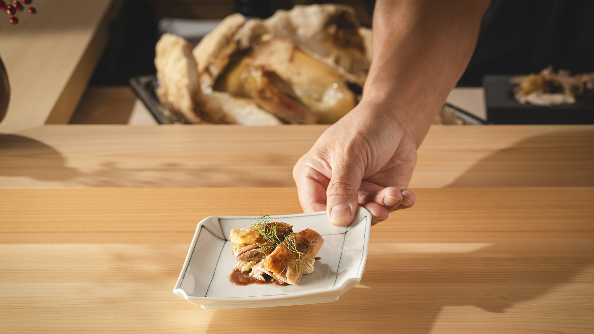 カウンター主体の小さな空間だからこそ、お客様一人ひとりに丁寧に向き合えることも大きな魅力。焼鳥に加え、和食の技を生かした一品料理や、ワイン・日本酒とのペアリングも大切にしており、焼鳥×割烹の世界を深めながら店づくりに取り組んでいます。
