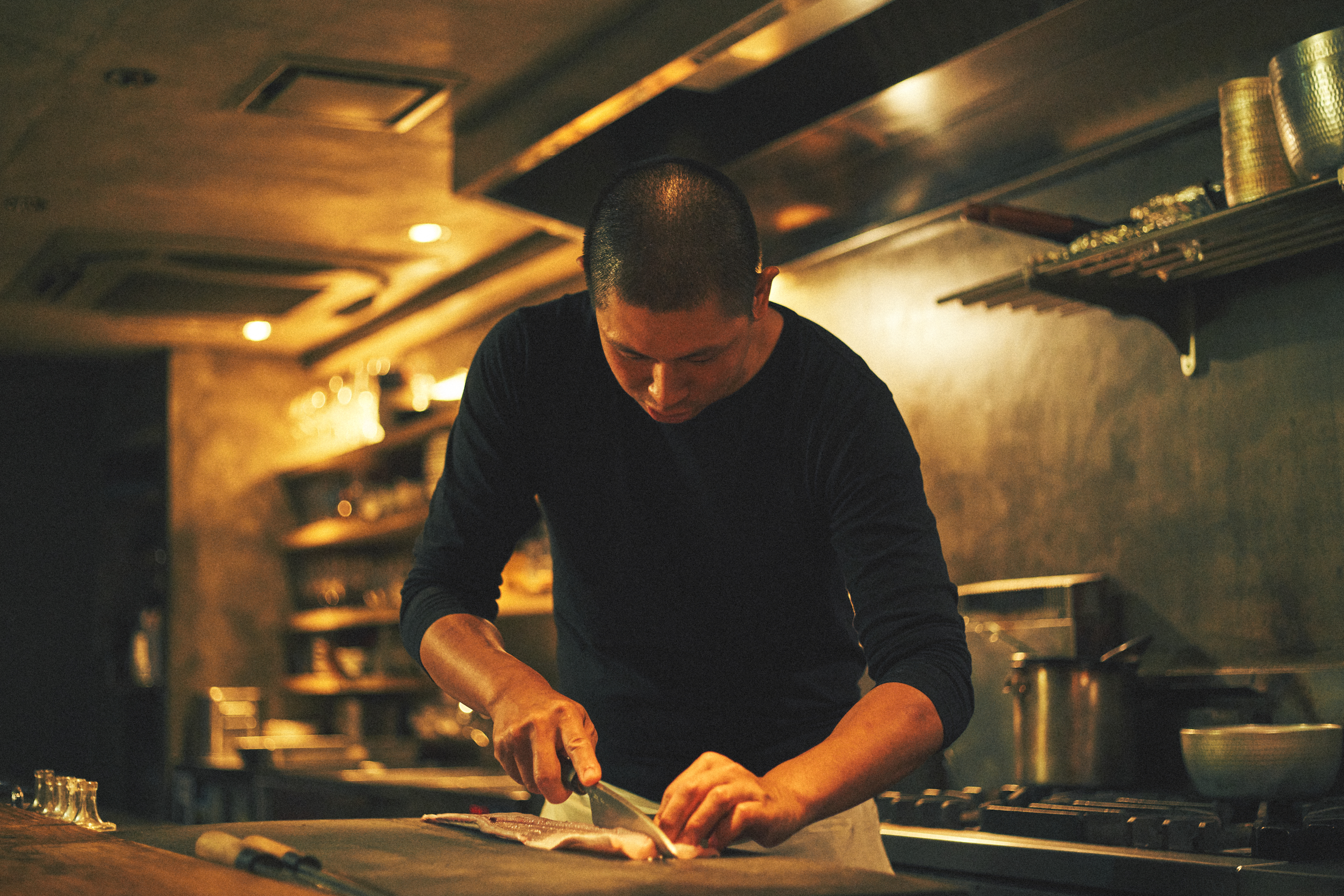実際の現場では、洗練された空気感の中でお客様と程よい距離感を保ちながら、ライブ感のある営業に関われるのも魅力のひとつ。ただ仕事を覚えるだけではなく、将来どんな店をつくりたいか、どんな料理人になりたいかを考えるきっかけにもつながっていきます。